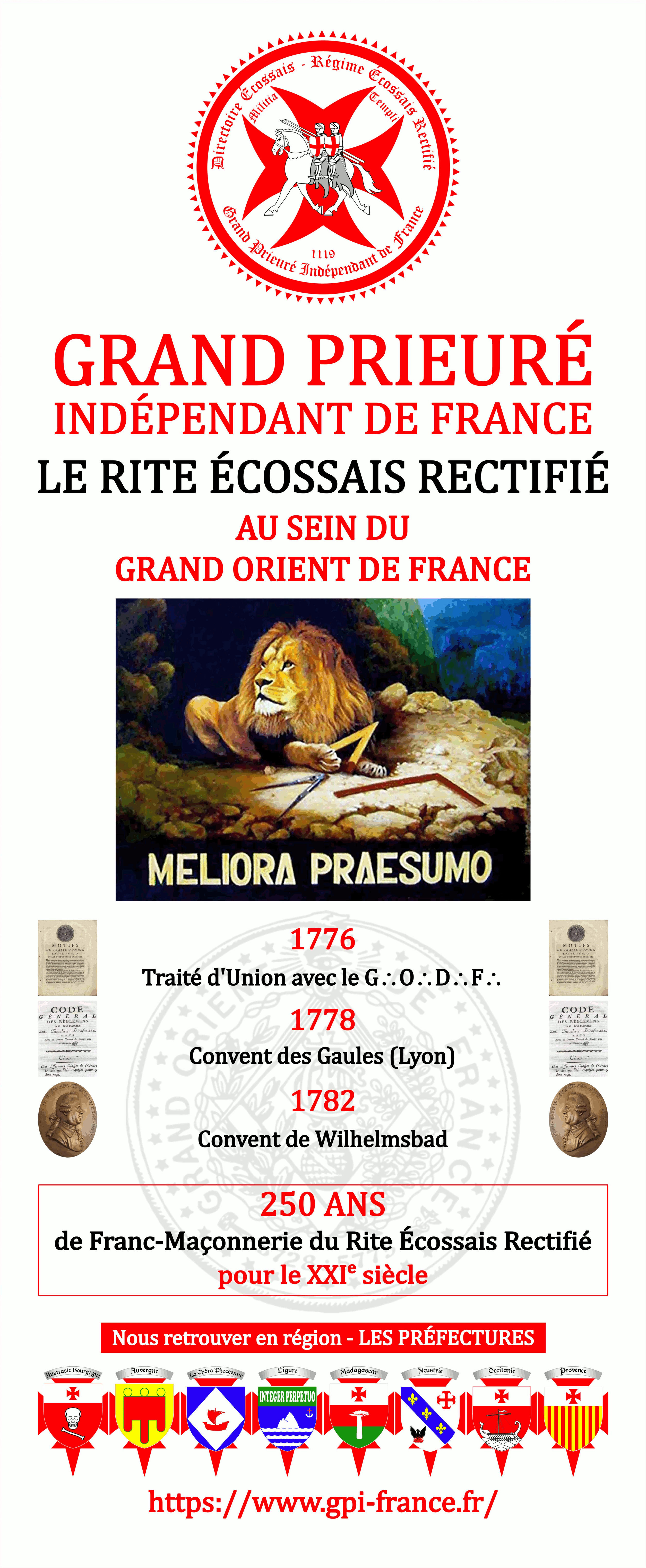 Ainsi sous l’appellation de Grand Prieuré Indépendant de France sont regroupées les Loges constituées par les Francs-maçons du Grand Orient de France pratiquant le Rite Ecossais Rectifié, titulaires des grades au-delà de la Maîtrise.